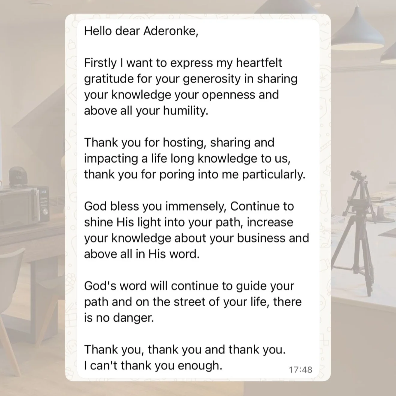 Pre-class WhatsApp call with instructor Aderonke to discuss your goals